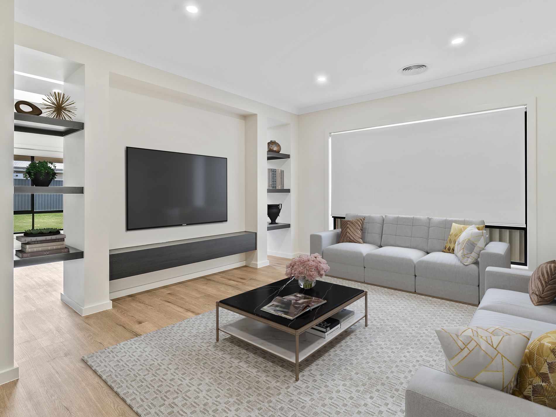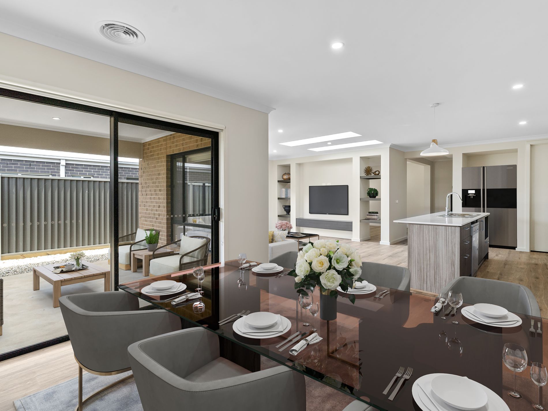 There are two living spaces ensuring plenty of room to entertain the whole family with the open plan living dining and kitchen area being the heart of the home and featuring beautiful stone benchtops, a 1200mm freestanding oven with gas cooktop, and a large walk in pantry making it as functional as it is visually impressive. There is refrigerated heating and cooling throughout the home to ensure comfort year round and the home has an abundance of natural light from the sky lights in the open-plan living and dining area that flows effortlessly out to the outdoor area, creating a seamless space for entertaining or everyday living.