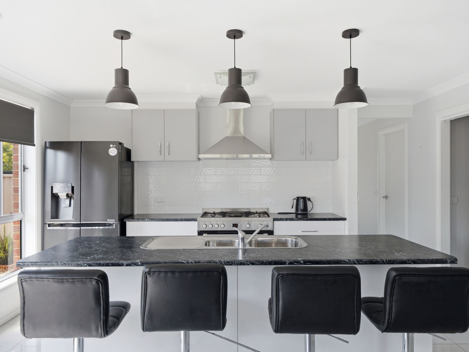 The home opens into a light-filled open-plan living and dining area, creating a comfortable space for everyday living and entertaining. The kitchen is well-appointed with generous storage including a walk in pantry, gas cooking and a freestanding oven, making it both practical and stylish for the home chef.